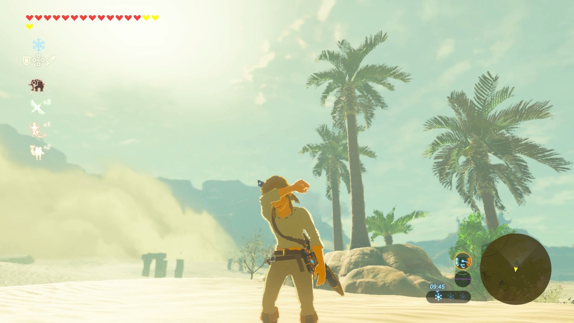 El calor es uno de los peligros del desierto y la región de los Gerudo, ya que durante el día merma la salud de Link (por la noche el frío se vuelve nuestro enemigo).