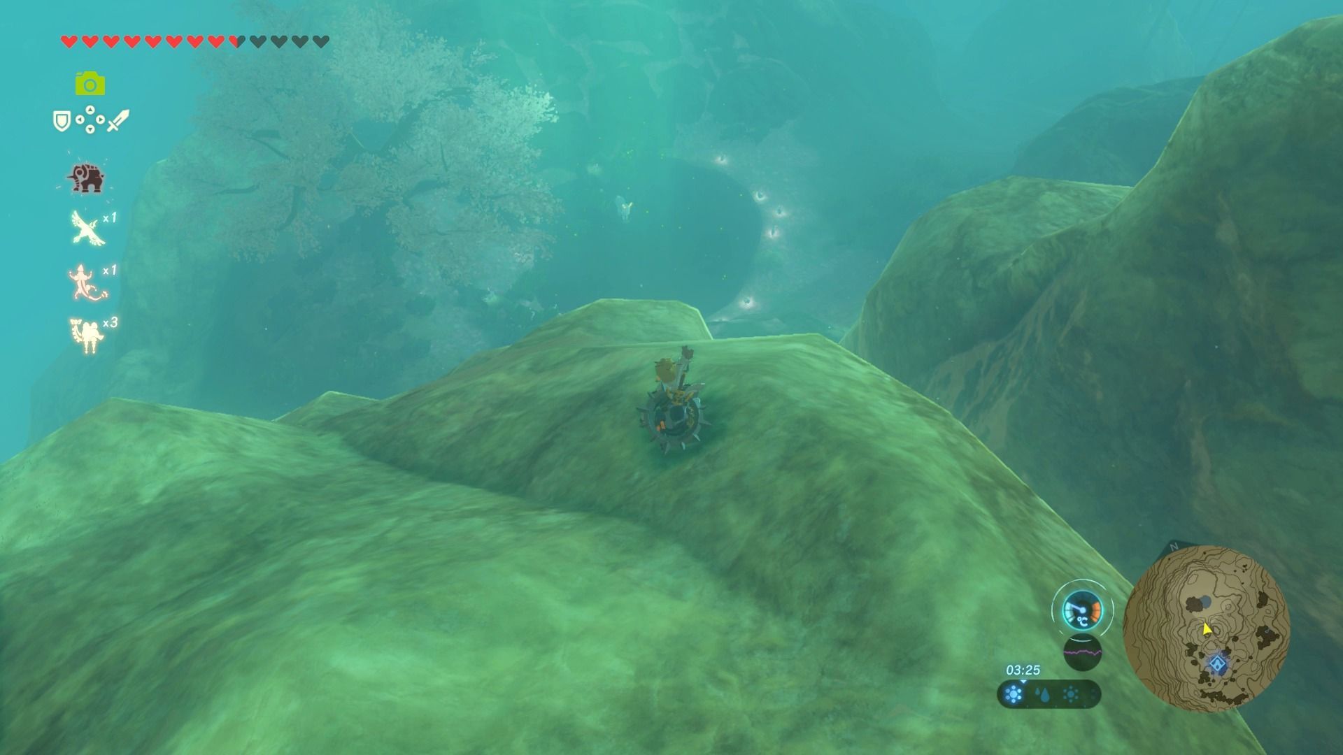 Sabremos de la presencia de esta criatura por un resplandor azul que se puede apreciar a cientos de metros de distancia, y acercarnos a él no será fácil, por lo que deberemos hacerlo agachados, con mucho cuidado y con una bonificación de sigilo, a poder ser equipados con las tres piezas del atuendo de sigilo: la máscara, las mallas y la túnica (mejor todavía si están mejoradas en alguna Fuente de la Gran Hada), que podemos adquirir en Kakariko.