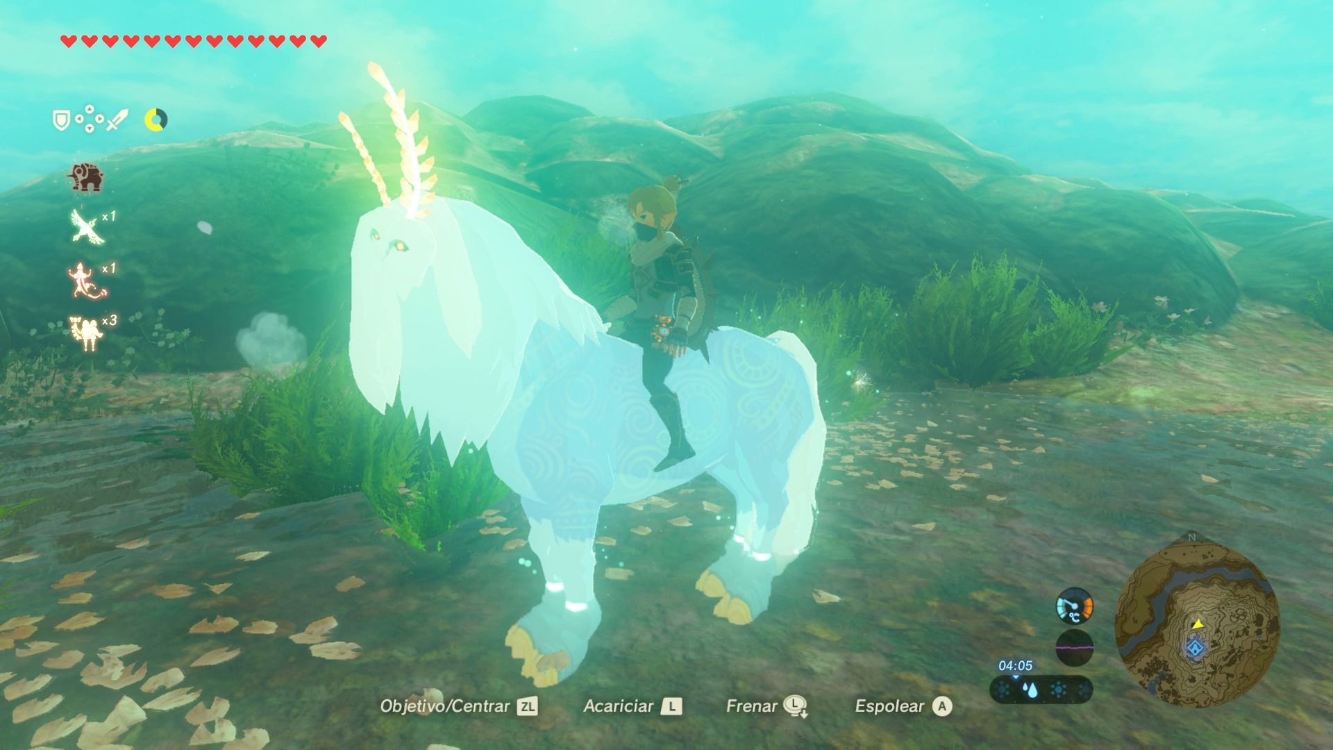 Una vez que consigamos montarnos en él tendremos que domarle, pulsando el botón L, para lo que necesitaremos dos círculos de resistencia completos, o tomar alguna comida o elixir que nos potencie la resistencia y que la recuperen en el proceso. Si tienes dudas de cómo se doma, puedes visitar la sección Caballos.