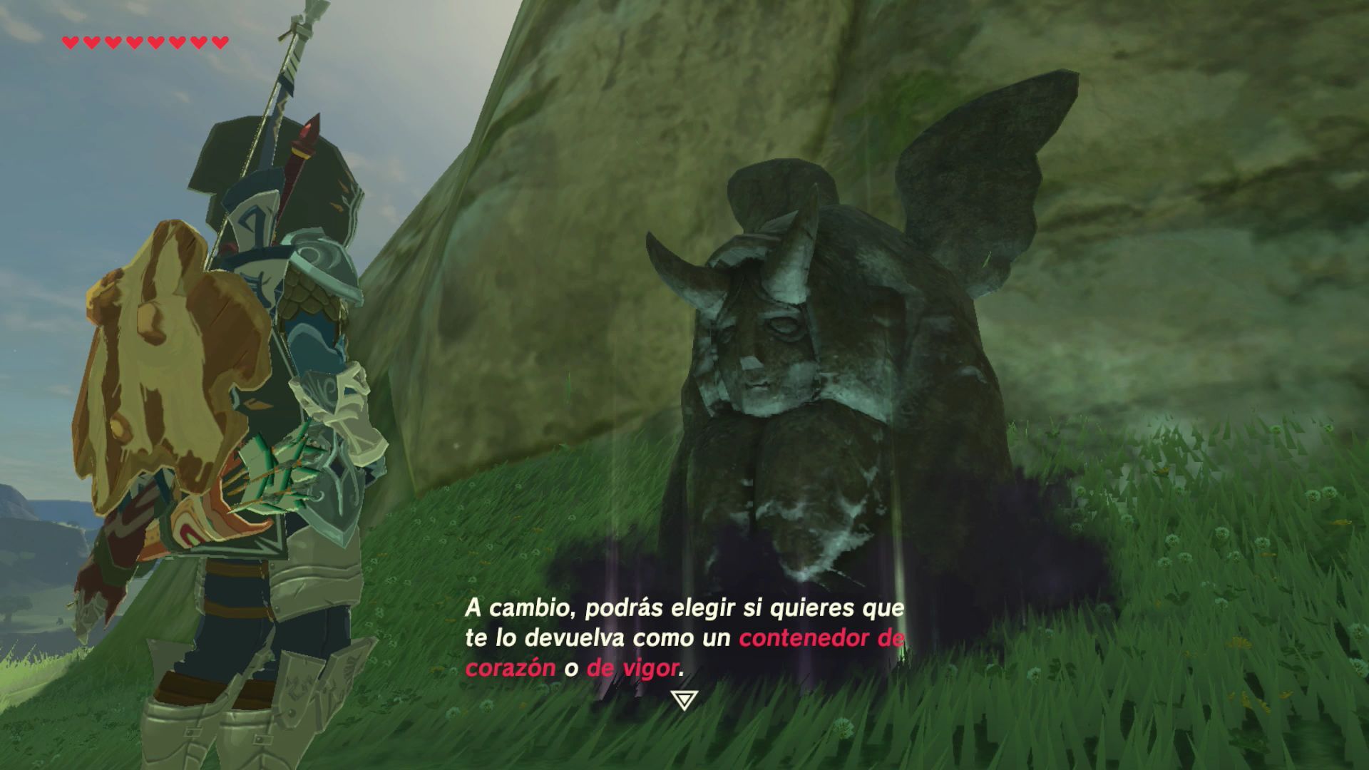 Al completar esta misión habrás desbloqueado la posibilidad de intercambiar corazones de vida o de vigor siempre que quieras previo pago de rupias.