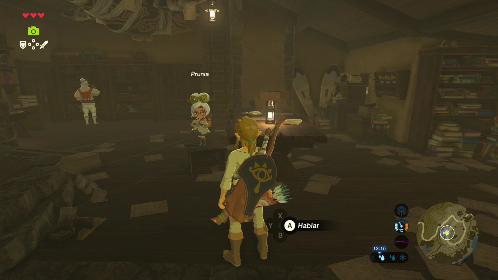 Habla con Prunia y pregunta por los materiales que le hacen falta para mejorar la Piedra sheikah.
