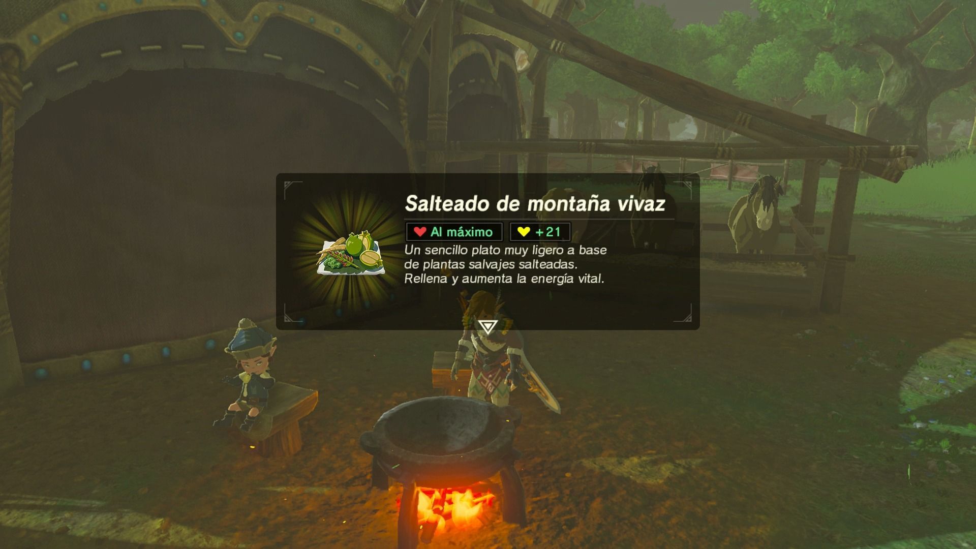 A la hora de recuperar salud y aumentar nuestros corazones máximos el plato más nutritivo que podemos cocinar es el Salteado de montaña vivaz, que es bastante sencillo de preparar.