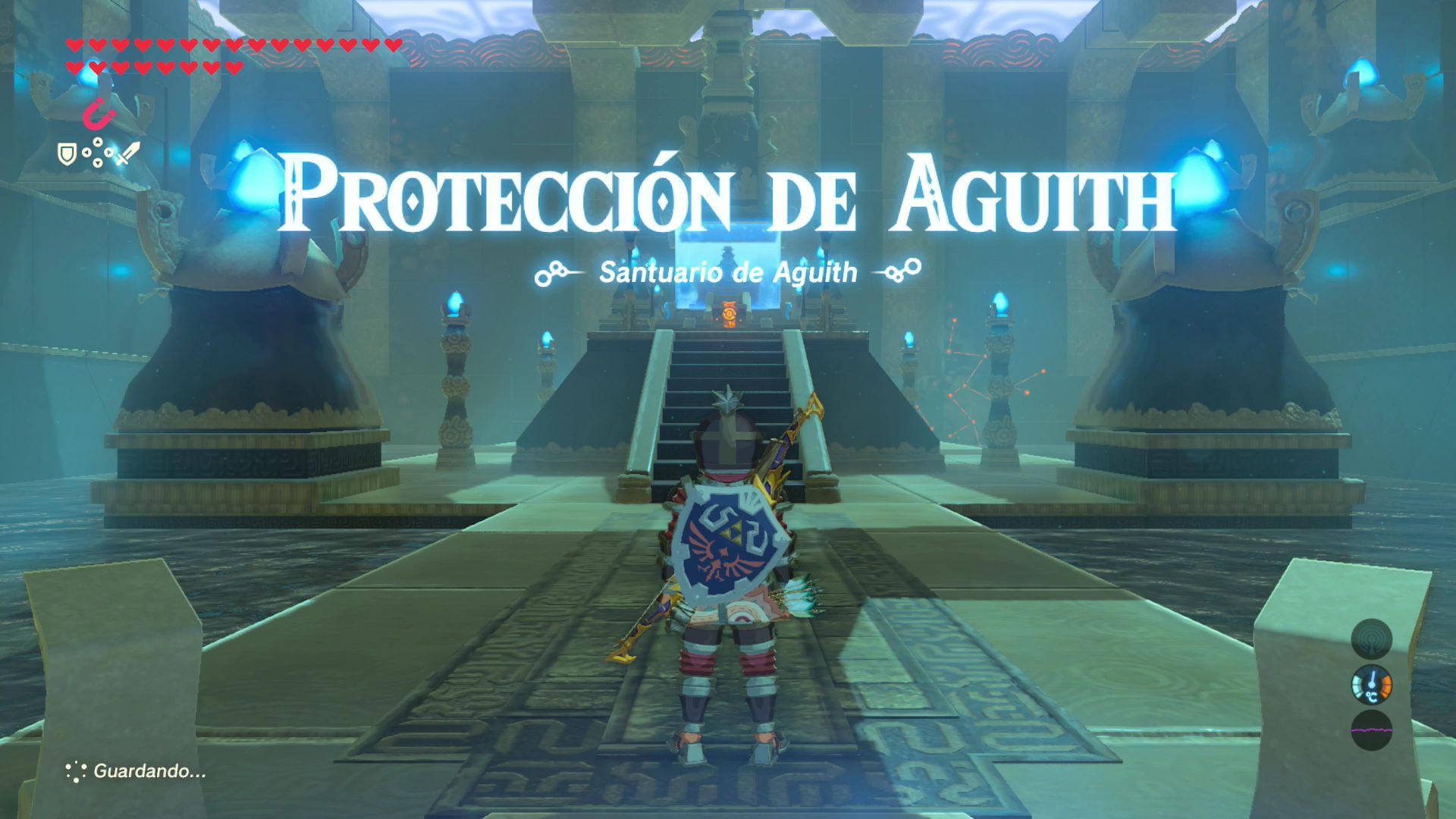 Este santuario no tiene ningún tipo de prueba. Nada más comenzar verás un camino central que te lleva hasta el cofre y más al fondo está el altar que debes examinar para completar el santuario.
