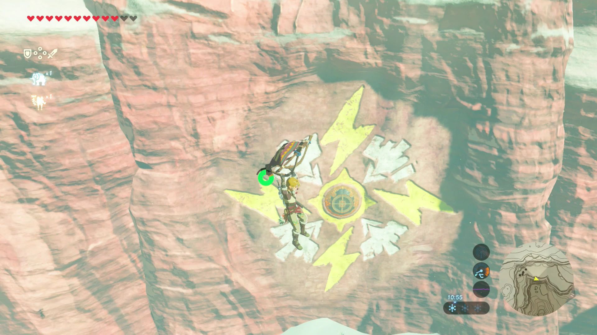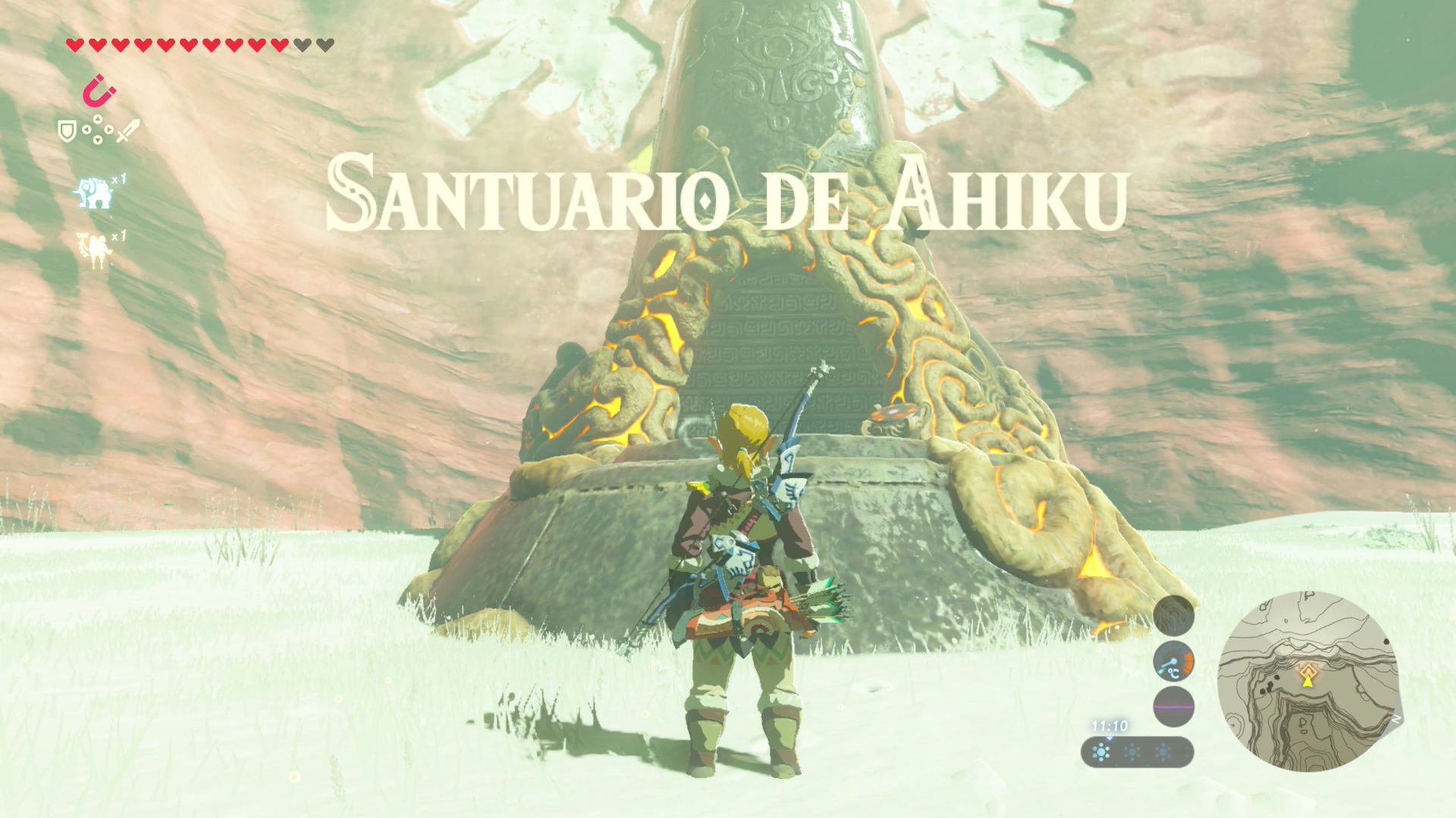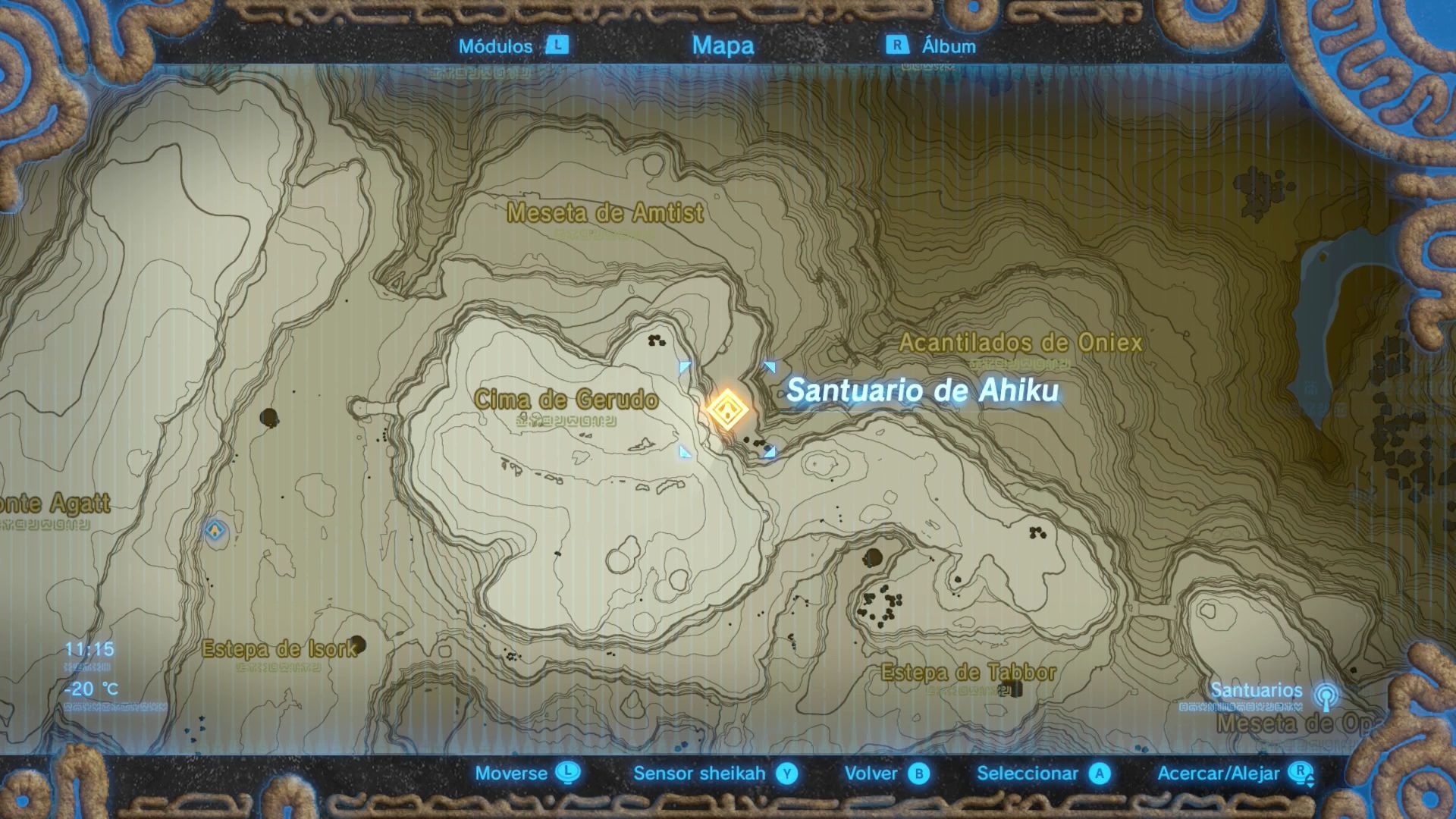 Este santuario se encuentra al norte de la Torre de Gerudo y tienes que superar la prueba heroica Signos en el acantilado. Está en la parte más fría de la montaña por lo que tendrás que comprar ropa con resistencia al frio en el Poblado orni si no quieres correr peligro.