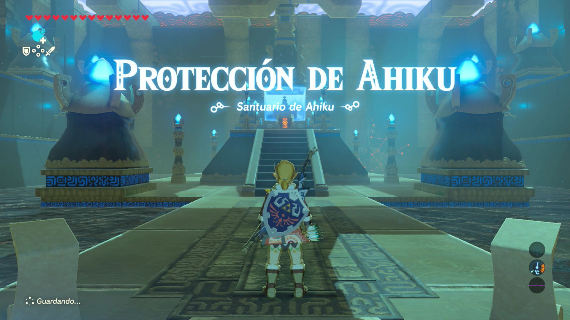 Este santuario no tiene ningún tipo de prueba. Nada más comenzar verás un camino central que te lleva hasta el cofre y más al fondo está el altar que debes examinar para completar el santuario.