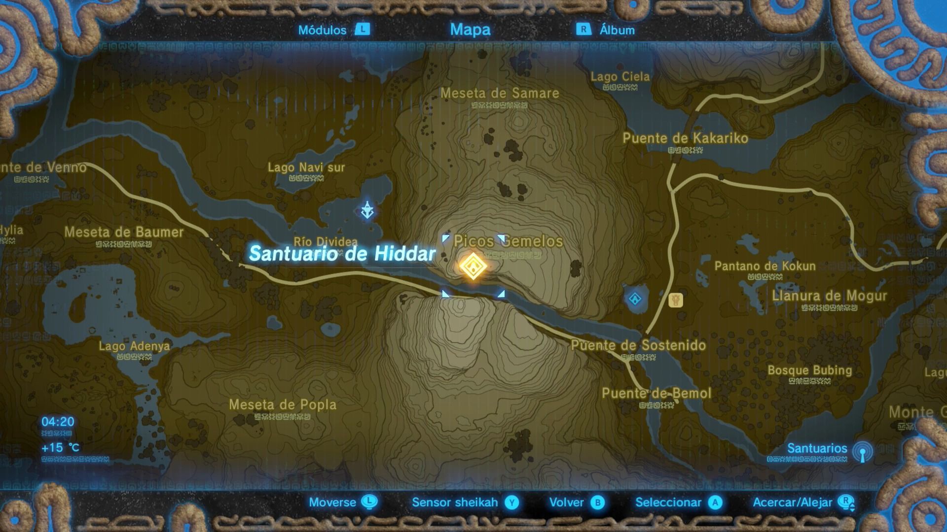Aquí primero tendrás que usar el imán para recoger algún barril de los que están cerca del agujero donde cae la plataforma y ponlo en la baldosa anterior para que la rampa vuelva a subir y así puedas llegar hasta el cofre. Quita el barril de antes para que la rampa vuelva a la posición original y sube por ella hasta el altar del santuario.