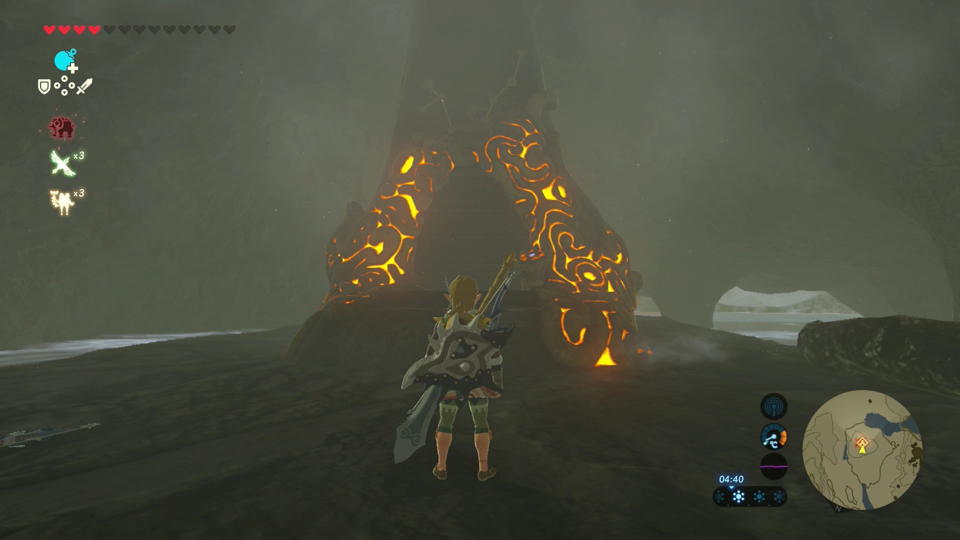 Este santuario se encuentra al este del Lago Hebra. Asegúrate de que tienes las vestimentas que otorgan resistencia al frio o te congelarás antes de llegar a él.