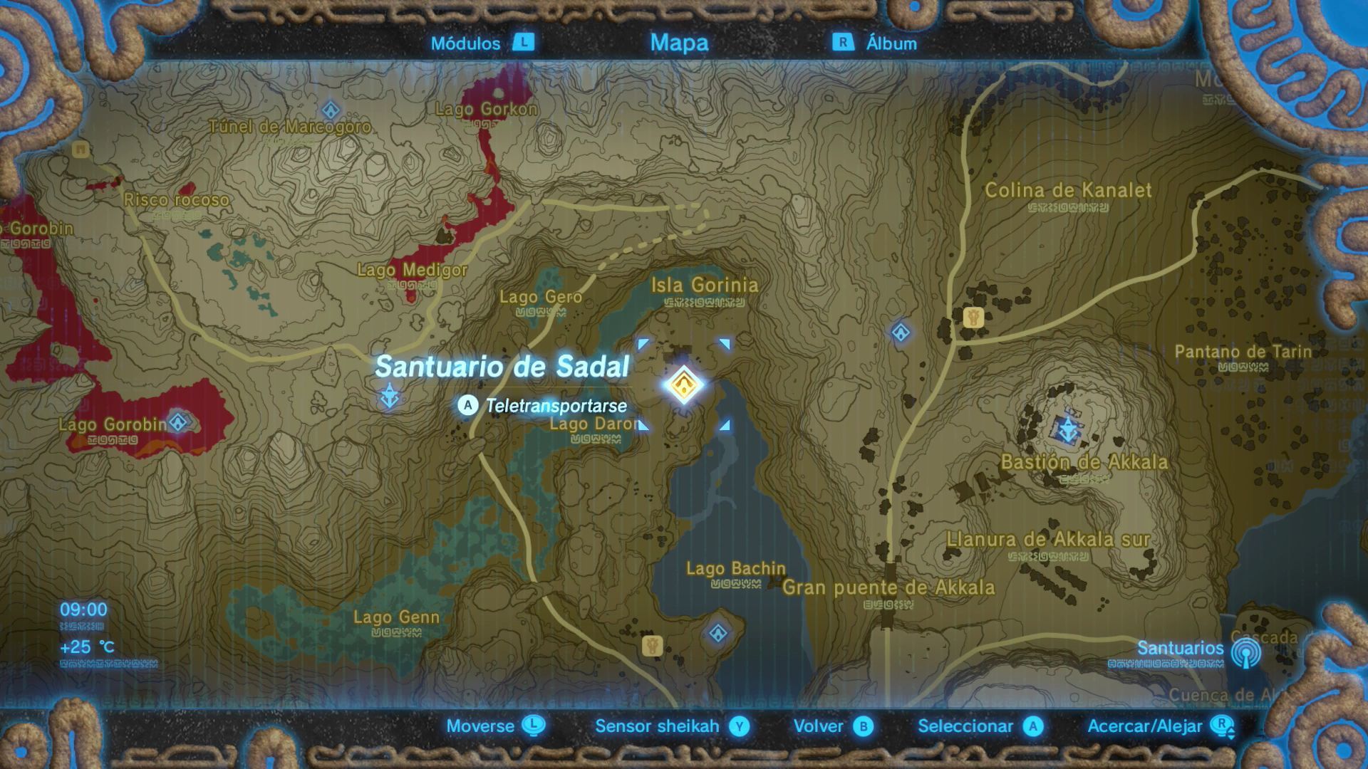 En esta sala dispara una flecha a las cuerdas que mantienen en alto unos farolillos para que prendan fuego a las plantas que hay por el suelo y así se quemen las cajas de madera que hay en la zona central. Cuando se destruyan las cajas verás que la losa cae encima de una baldosa y se abrirá el camino que lleva hasta el altar.