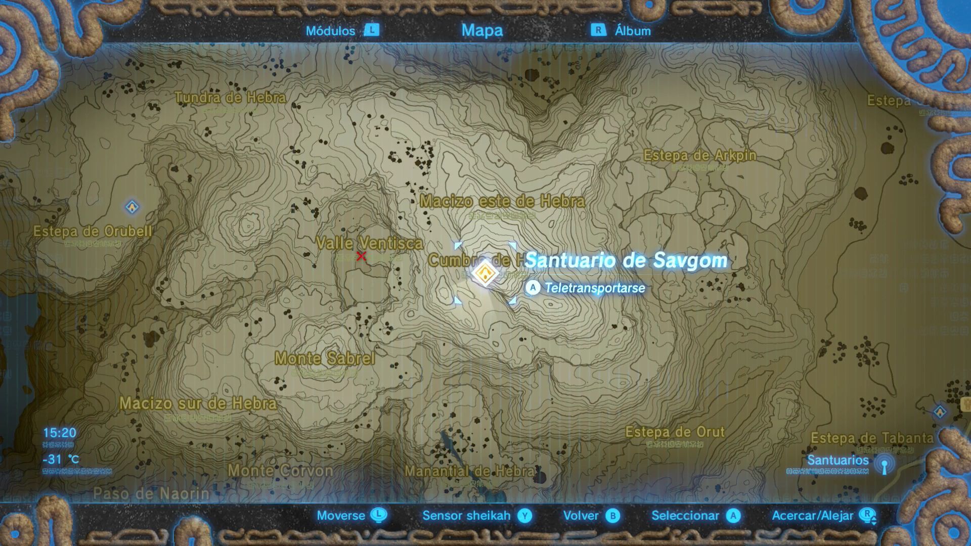 Este santuario se encuentra en la Cordillera de Hebra. Asegúrate de que tienes las vestimentas que otorgan resistencia al frio o te congelarás antes de llegar a él.
