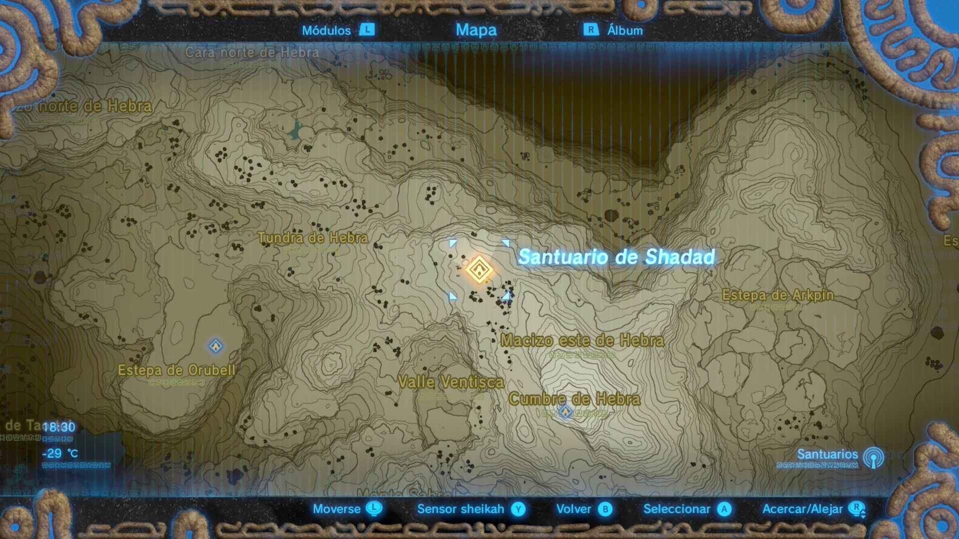 Este santuario se encuentra en la Cordillera de Hebra. Asegúrate de que tienes las vestimentas que otorgan resistencia al frio o te congelarás antes de llegar a él.