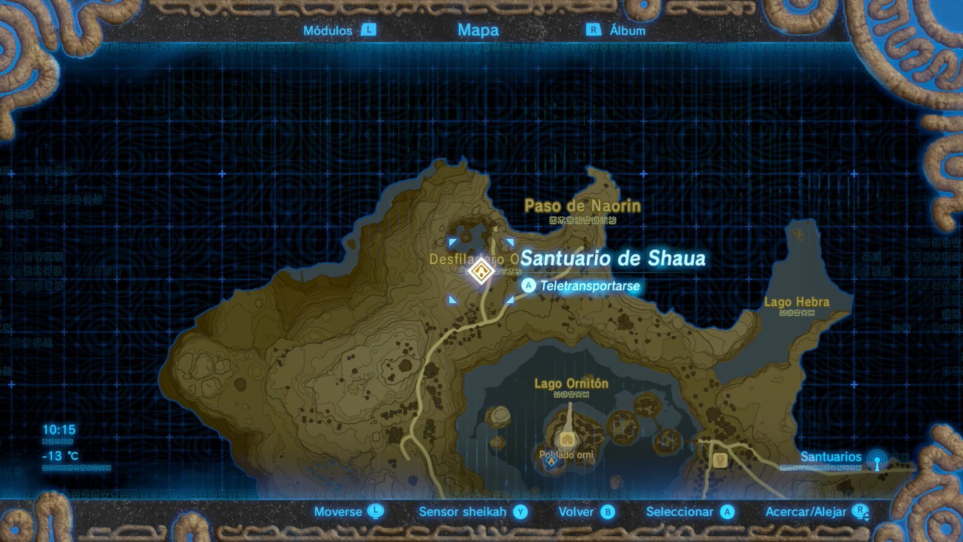 Al usar el aire que verás en el hueco en el que te acabas de colar planea hacia el fondo del lado derecho para llegar al segundo cofre de este santuario. Vuelve al último punto de aire y ve hacia la izquierda para llegar al altar del santuario.