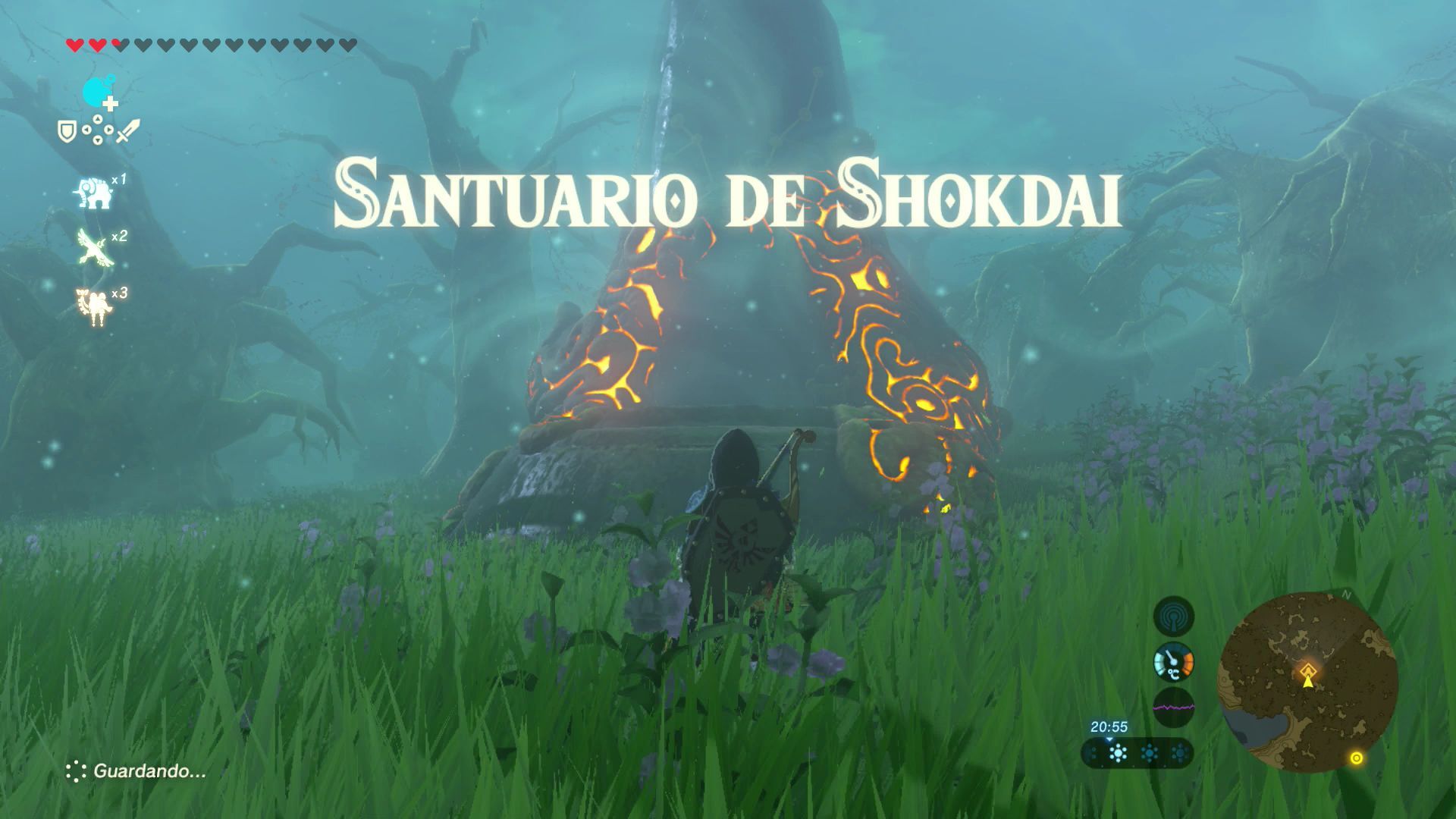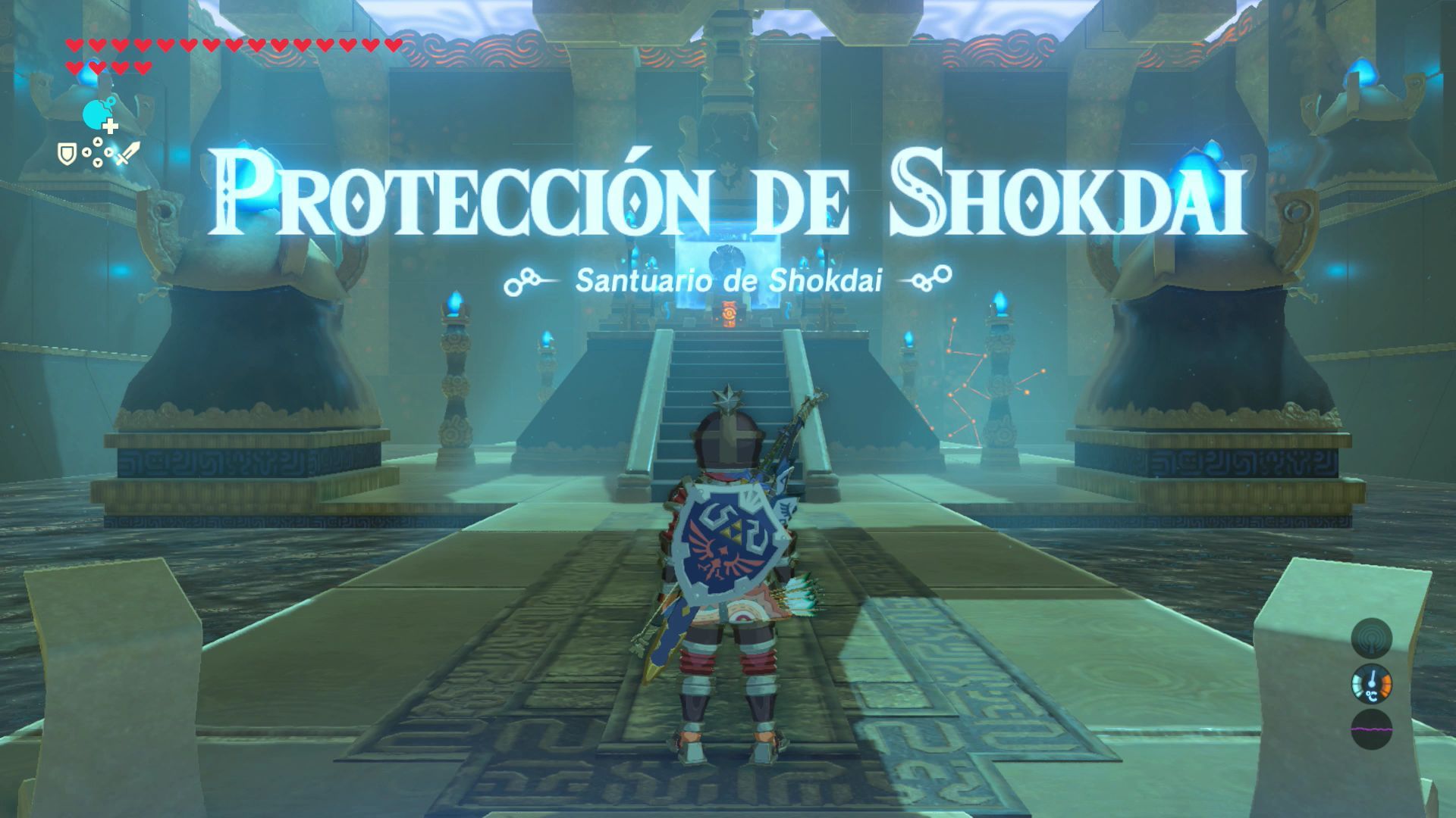 Nada más comenzar verás un camino central que te lleva hasta el cofre y más al fondo está el altar que debes examinar para completar el santuario.
