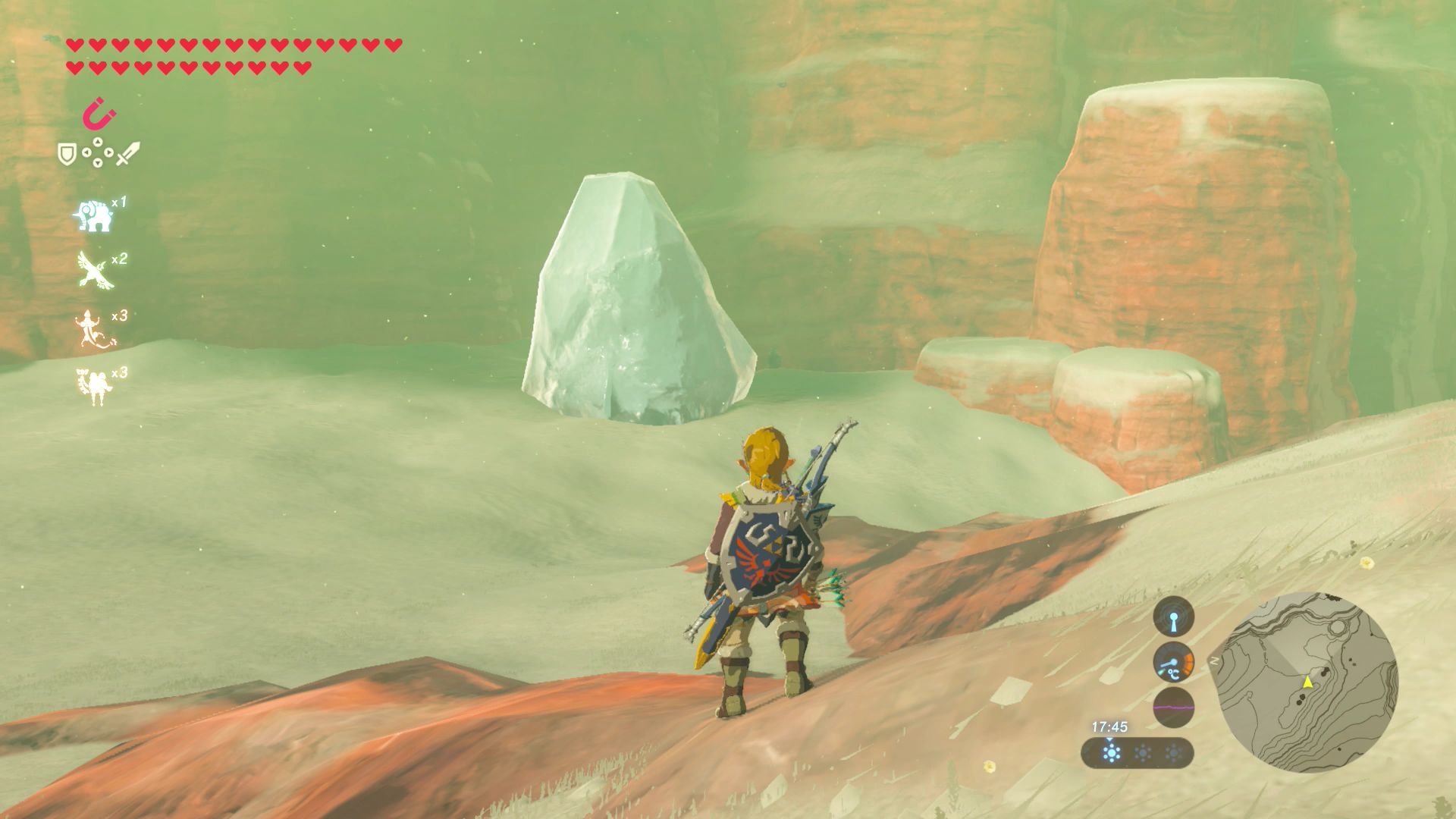 Al llegar a la zona tendrás que usar siete Flechas ígnea para prenderle fuego a un bloque de hielo que cubre el Santuario de Utak.