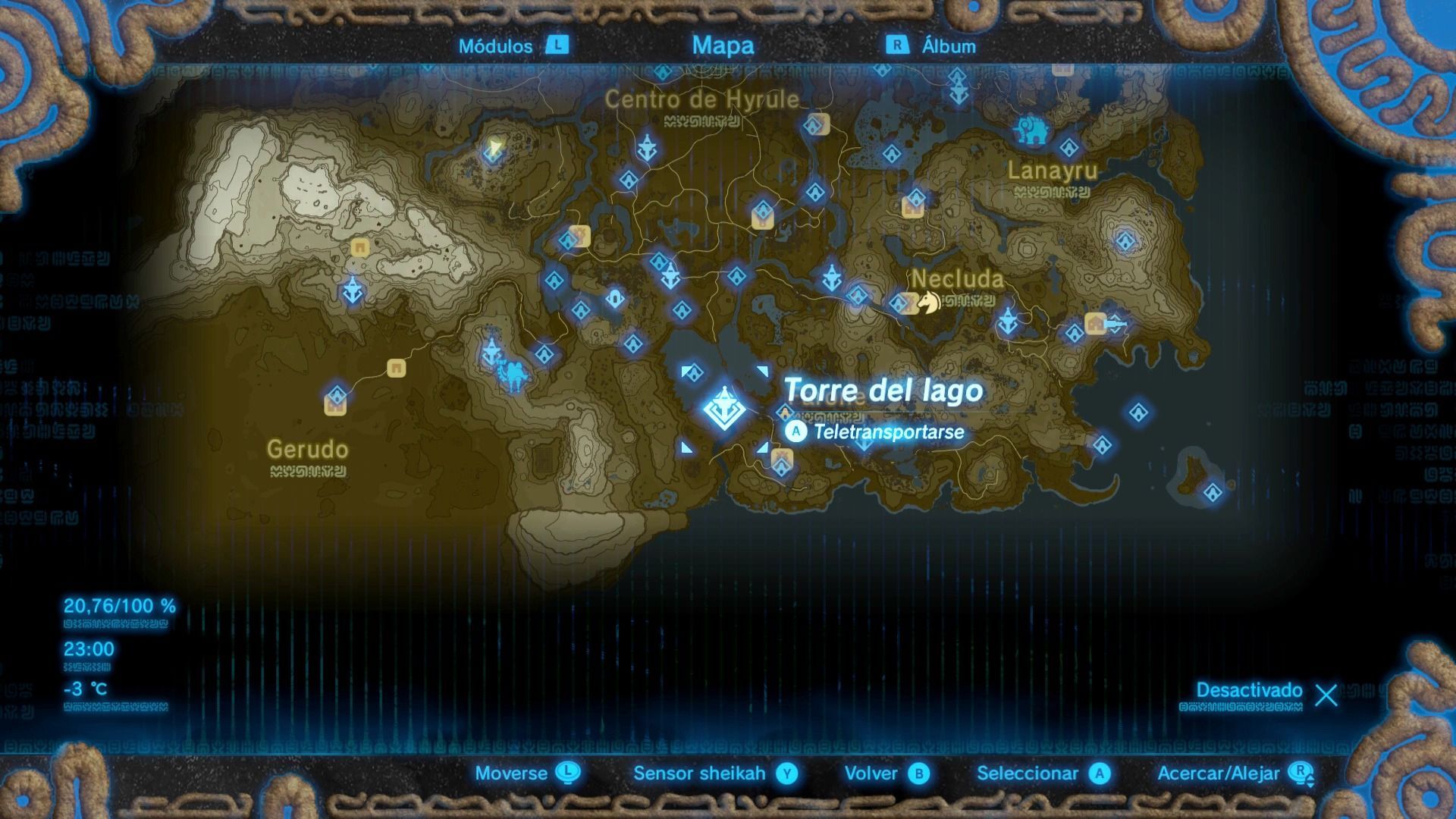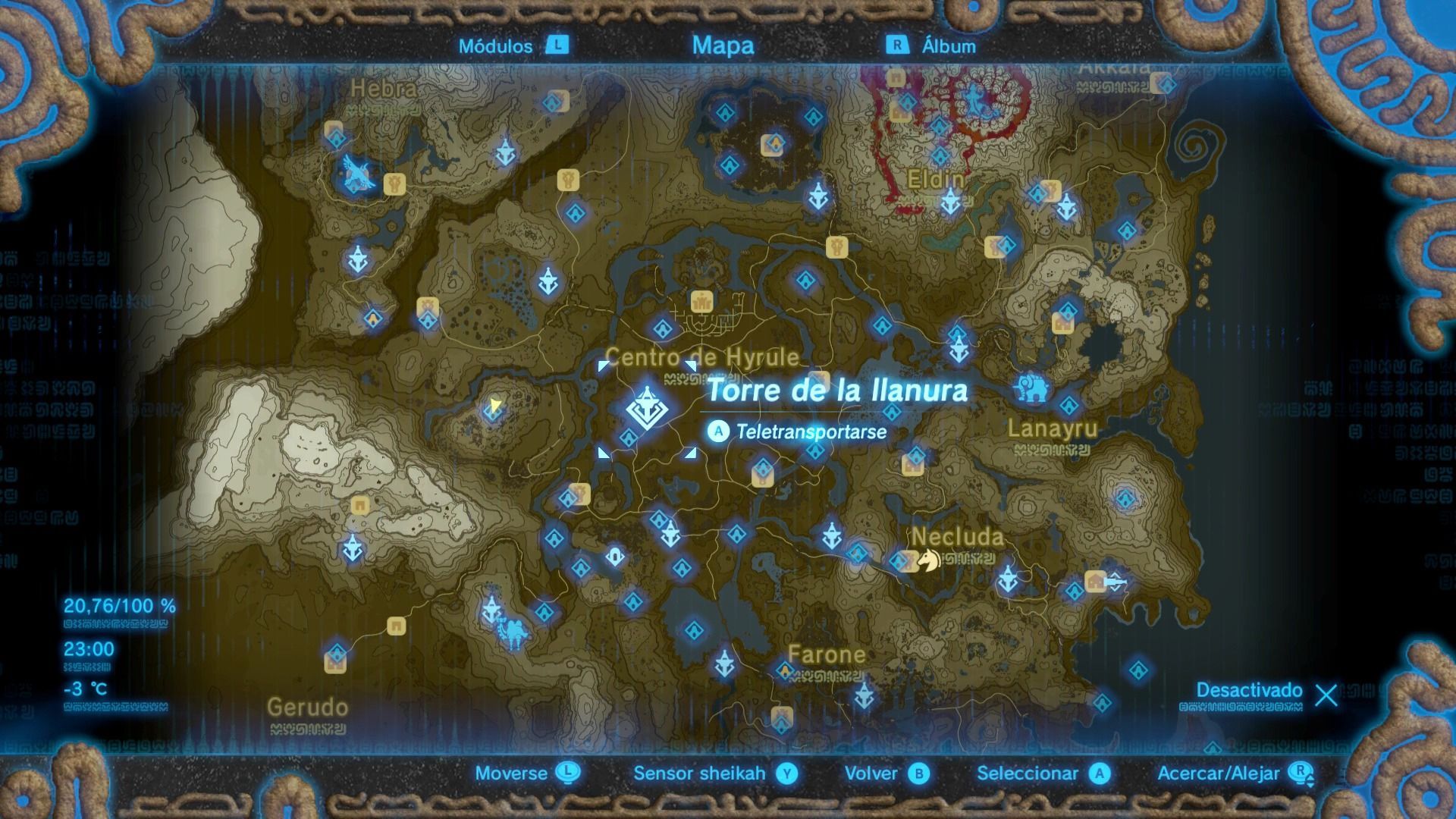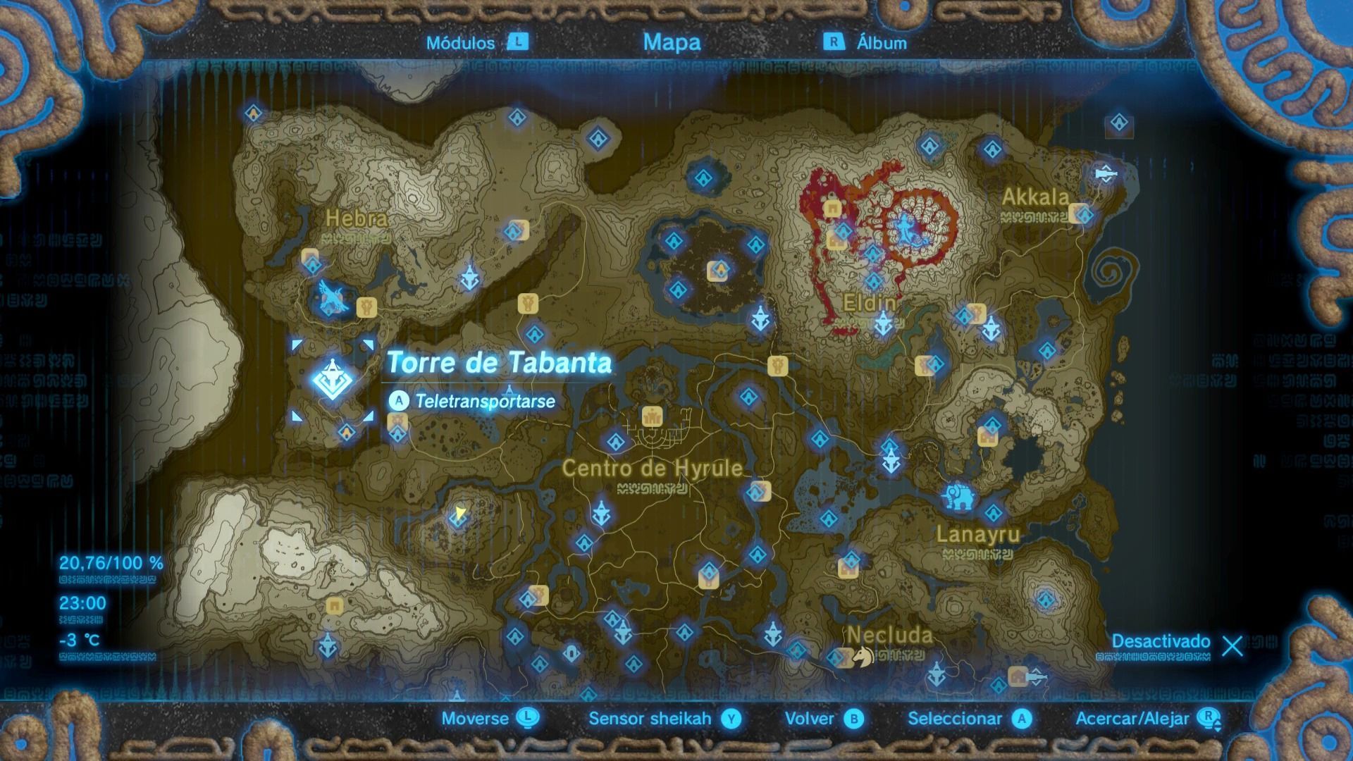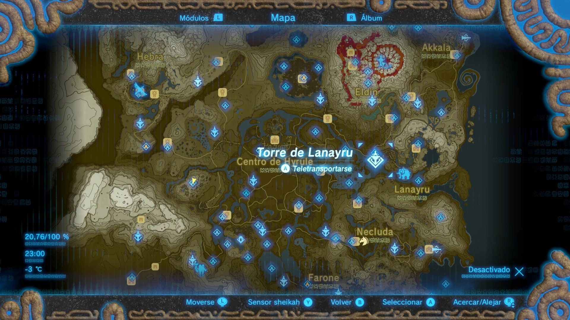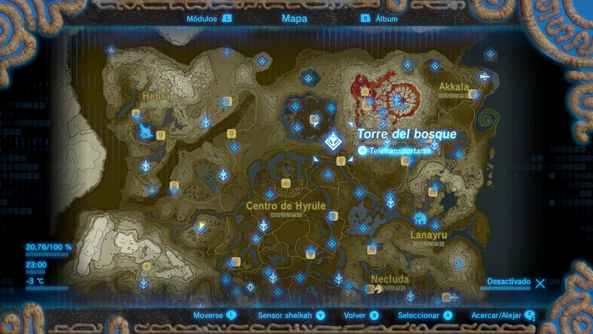 Esta es una de las torres más difíciles de escalar, ya que se encuentra en lo alto del Bastión de Akkala, una fortaleza vigilada por guardianes voladores. Puedes escalar el bastión de diferentes formas, pero siempre intenta ocultarte de la vista de los guardianes. Cuando llegues a la base, verás que la zona está infectada de esa sustancia pringosa que nos daña, por lo que tendremos que buscar un ojo brillante para dispararle una flecha.