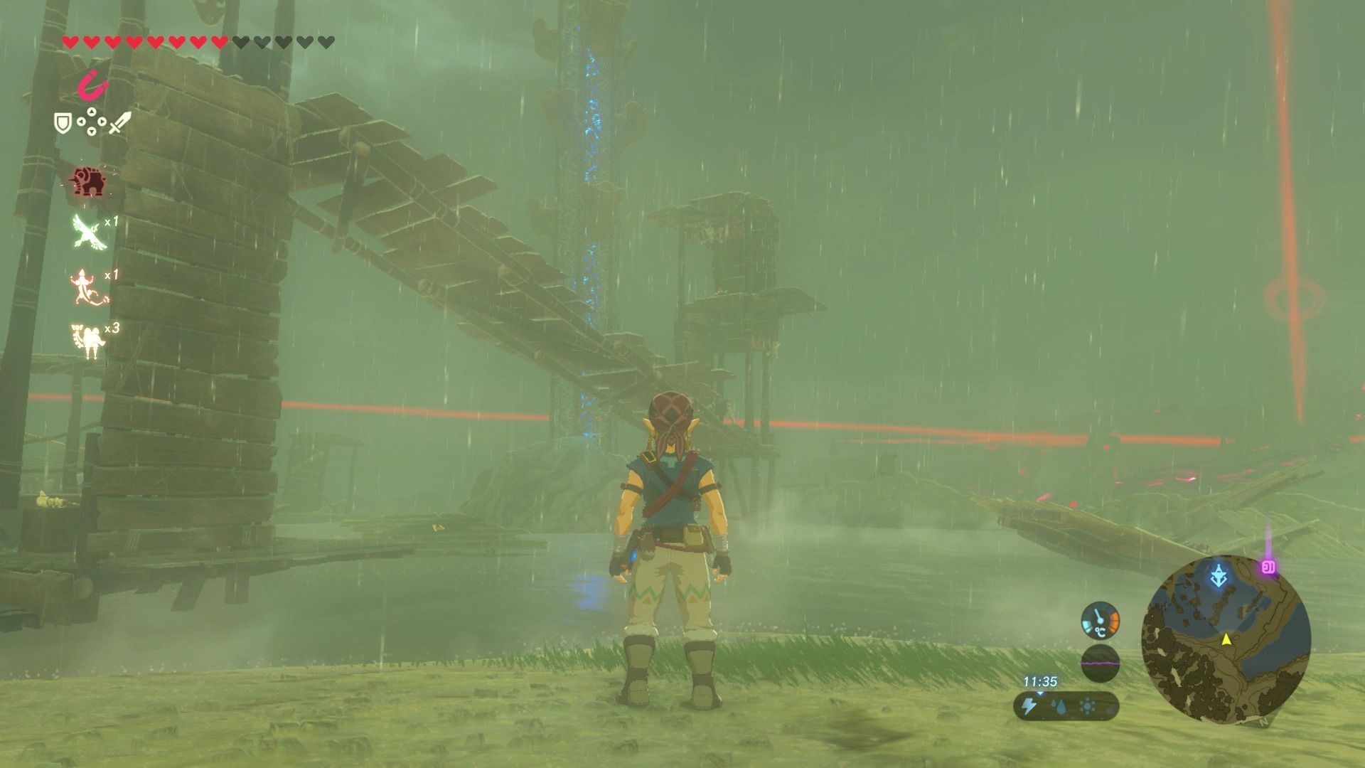 Esta torre está rodeada de agua y de enemigos eléctricos, por lo que la combinación puede resultar mortal, ya que si te electrocutan se te caen el arma y el escudo. Por si esto fuera poco, esta zona es propensa a las tormentas eléctricas, así que o limpias la zona de enemigos antes de intentar subir, o echas a correr y te la juegas, una estrategia que muchas veces funciona.
