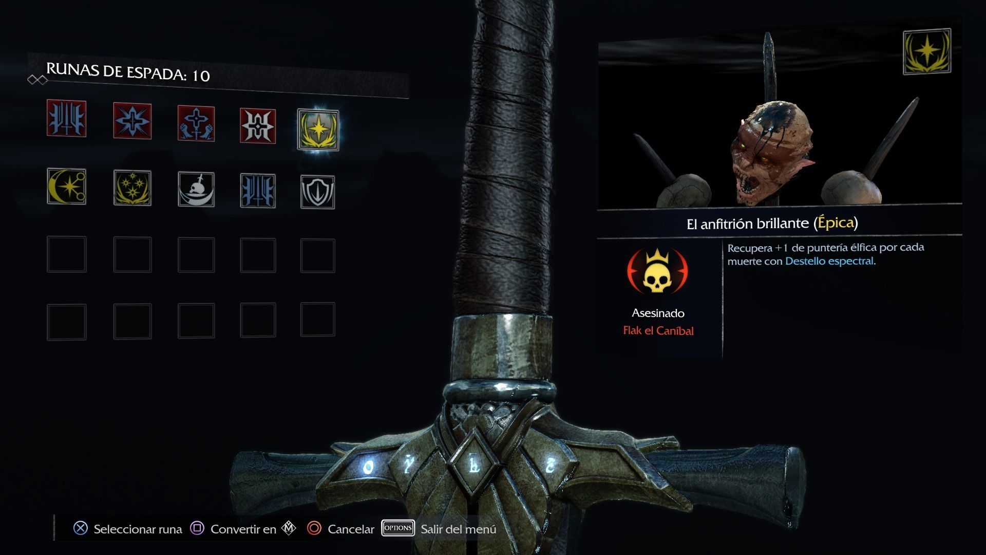 Las runas las conseguiremos al matar a capitanes o caudillos de los uruk. Las runas que recibamos son aleatorias y no dependen de la forma o el arma con que los hayamos matado.