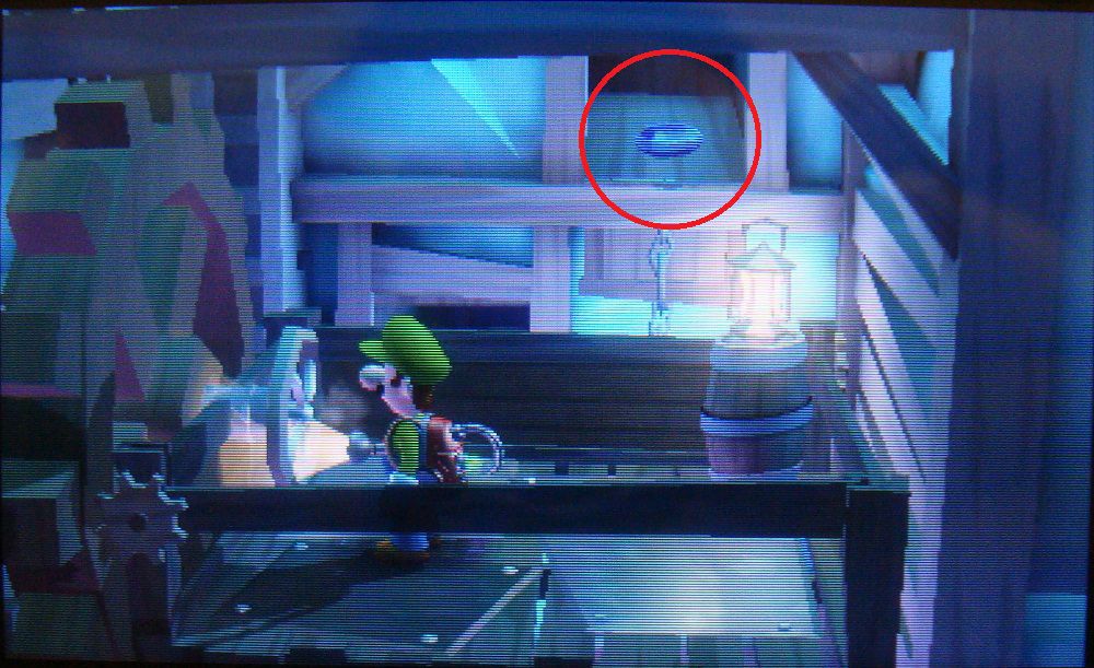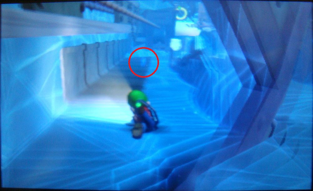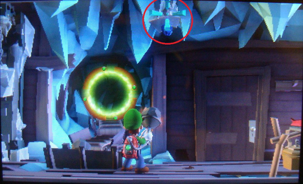 Coge el leño del fuego y úsalo para derretir el hielo que bloquea la salida. Cuando estés a mitad se abrirá la ventana y entrarán varios fantasmas. Después de capturarlos, cierra la ventana manteniendo pulsado L y enciende el leño en la hoguera para derretir el hielo que queda. Abre la puerta.