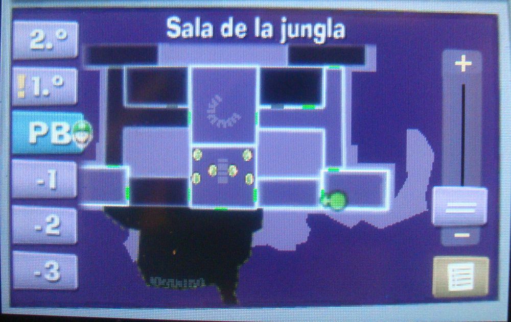 Ve por la puerta de la derecha, sigue recto hasta la sala de la jungla y sal por la puerta norte. Gira a la izquierda y sal por la puerta del fondo.