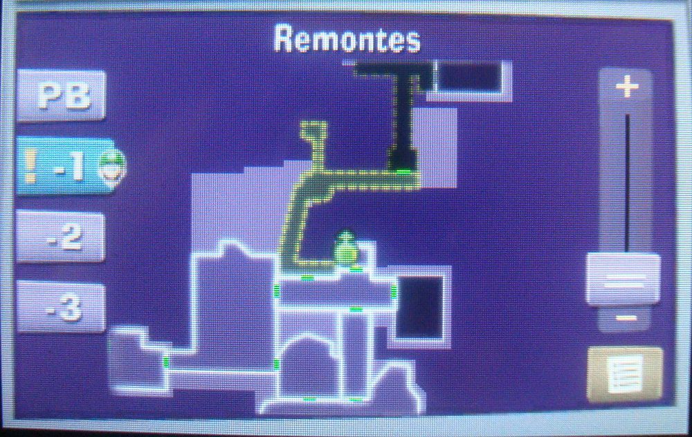 Dentro del teleférico, examina el artilugio con manillar. Con él podrás lanzar piedras de fuego que derriten el hielo. Lanza una piedra al hielo que hay a los pies de un árbol de la izquierda. Más tarde, cuando pases por allí, cruza el tronco y entra en la caseta para empezar un minijuego de bolas de nieve.