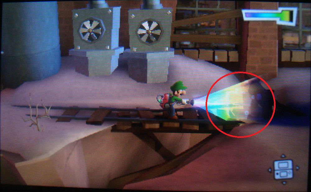 Te volverá a llamar el profesor. Después, ilumina al robotito de la pared para que abra una brecha de agua, que hará subir la arena. Tira de la cadena y bajarán unas escaleras. Sube por ella, aparecerán dos fantasmas verdes y uno rojo que va por debajo de la arena. Una vez capturados, sube de nuevo y entra por la puerta.