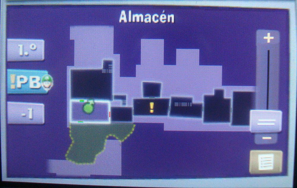 Haz lo mismo con el rollo de cinta rojo que hay por la zona derecha de la estancia y aparecerá combootador. Tras capturarlo, abre la caja fuerte iluminando el panel y recoge el rollo de cinta dorado. Ponlo en el artilugio y tira de la cinta, obtendrás una llave. Ve por la puerta de la derecha.