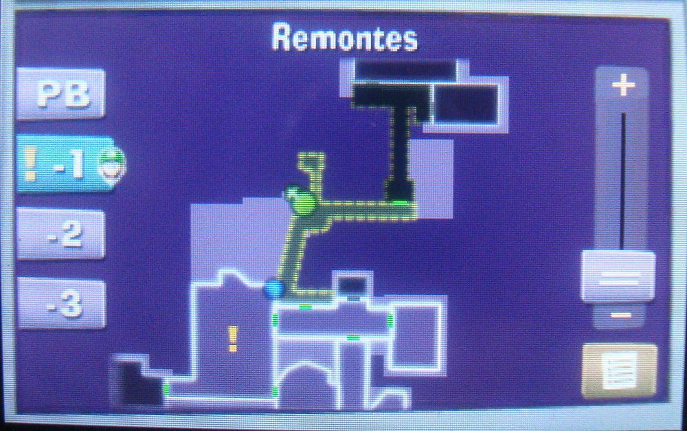 Ve hacia la derecha. Aunque parezca que hay un vacío, en realidad es un espejo. Al fondo hay un cofre, aspira la nieve y ábrelo para obtener una llave. Da la vuelta y baja por la ladera izquierda, entra por la puerta.