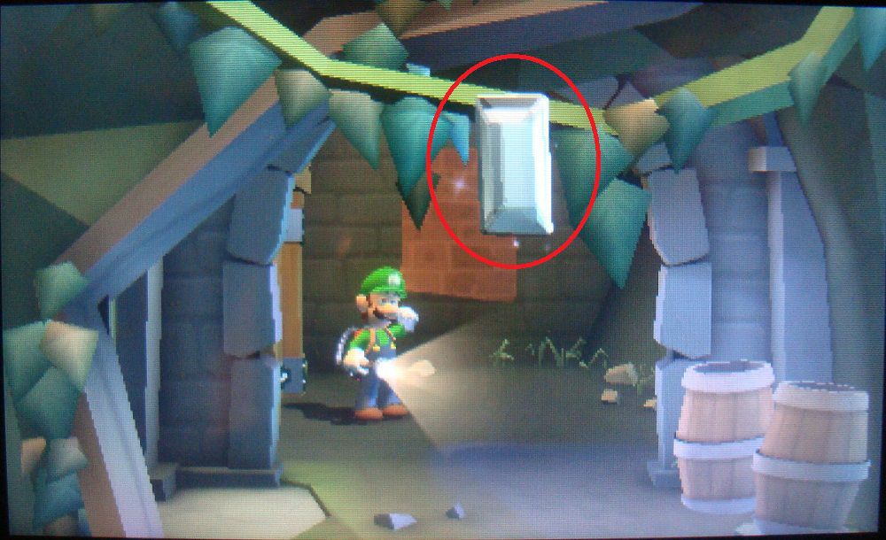 Baja las escaleras y examina el barril junto a la armadura. Saldrá un fantasma, cázalo. Ve hasta el fondo y entra en la última celda (los barrotes son de mentira). Tira de la cadena para que el cuadro se gire. Desde delante de la segunda celda, usa el desoscurizador en el cuadro para que caiga una bomba y te permita acceder a ella. Entra a través de la primera celda y examina el barril de la izquierda, donde se esconde el perrito. Captúralo y habrás recuperado la llave. El profesor te llamará y terminará la misión.