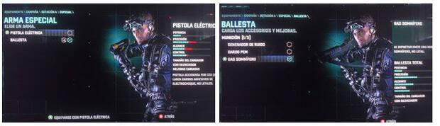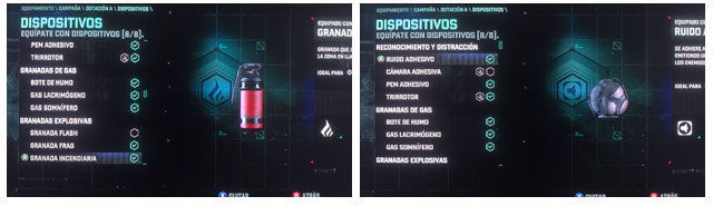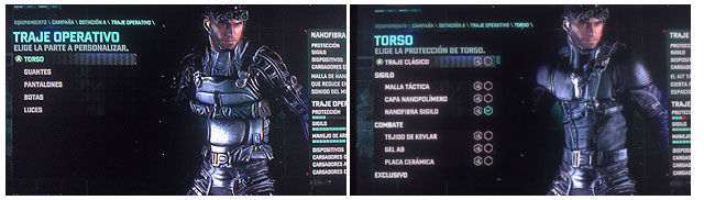 Hay 2 maneras de mejorar el traje, hacia sigilo lo que nos dará mayor capacidad de dispositivos y un sigilo perfecto o hacia el combate lo que hará que llevemos mas cargadores para las armas y seamos muchos mas resistentes, es bueno hacerse 2 dotaciones una con sigilo y otra con protección.