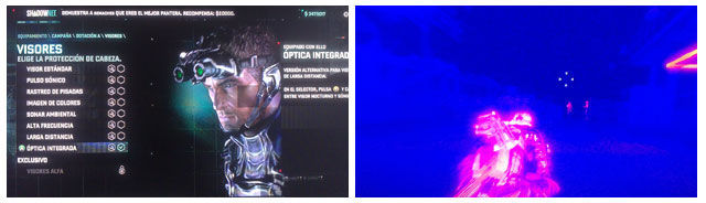 Gracias a los visores las zonas oscuras las paredes no serán ningún obstáculo para nosotros, podemos cambiar entre el sónico y el nocturno pulsado Y o Triangulo manteniendo la cruceta hacia arriba.