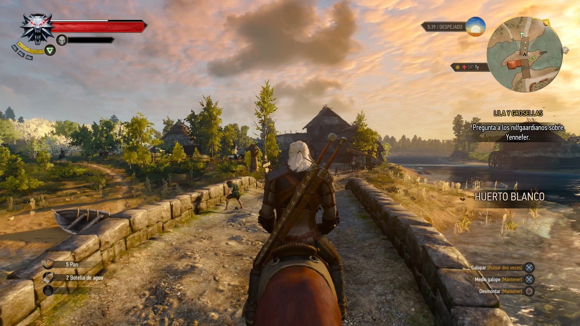 Tras superar el interesante prólogo, que sirve de tutorial para acostumbrarnos a los controles y aprender el sistema de combate, llegamos junto a Vesemir a Huerto Blanco, la primera zona de libre exploración del juego, de un tamaño no demasiado grande en comparación para lo que nos encontraremos en el resto de la aventura. Aquí aprenderemos algunos de los conceptos básicos de la jugabilidad, nos encontraremos con algunas de misiones y actividades secundarias, y conviene exprimir bien esta zona antes de seguir con la aventura.