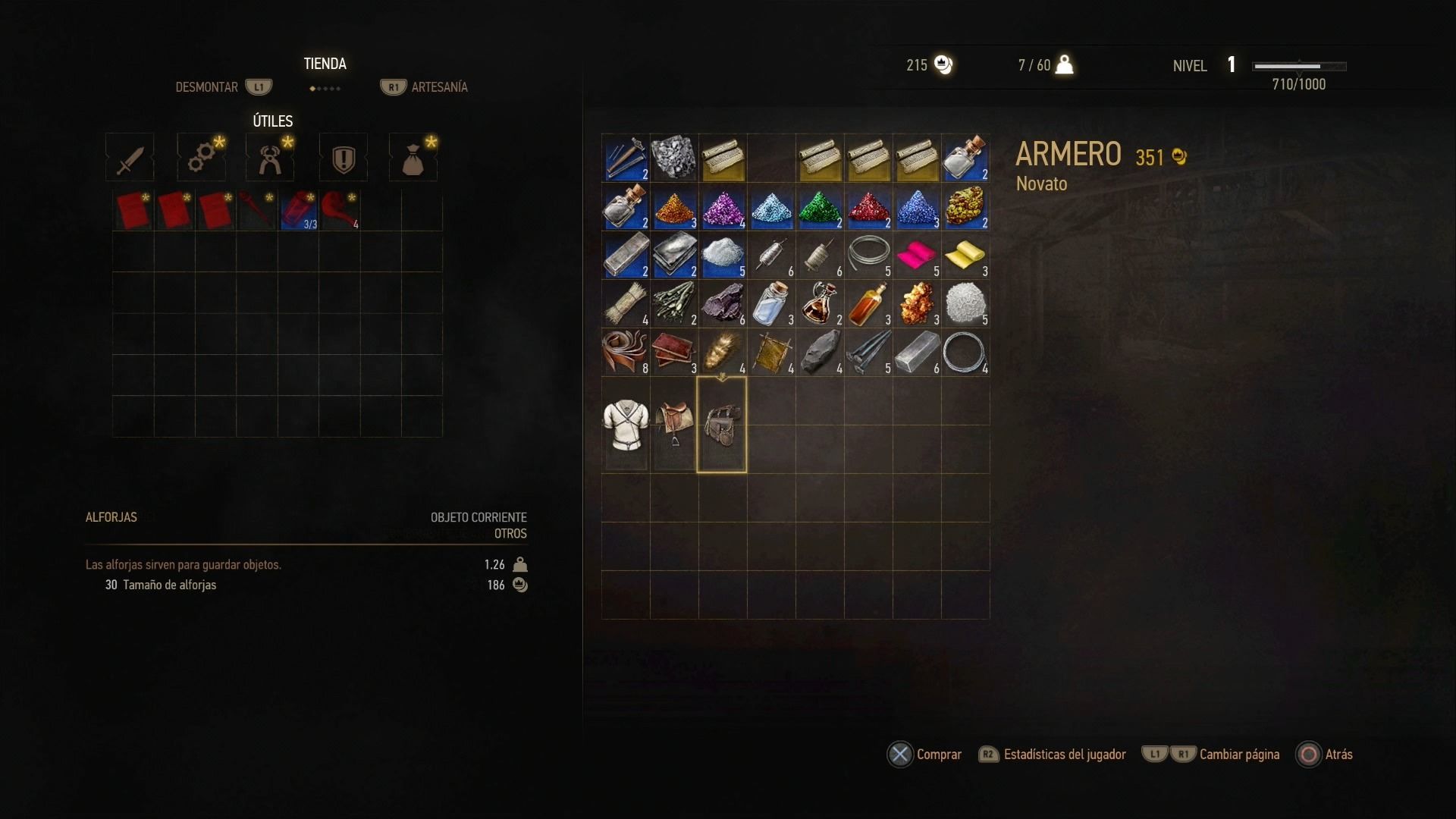 - Algo que os recomendamos mucho en estas primeras horas de juego es que tras resolver la misión ‘Un incendiario retorcido’, en la que tenemos que descubrir quién ha quemado el negocio del enano herrero, le compremos las alforjas, un objeto que al equipar nos permite aumentar la capacidad máxima de peso del inventario, pasando de 60 a 90.