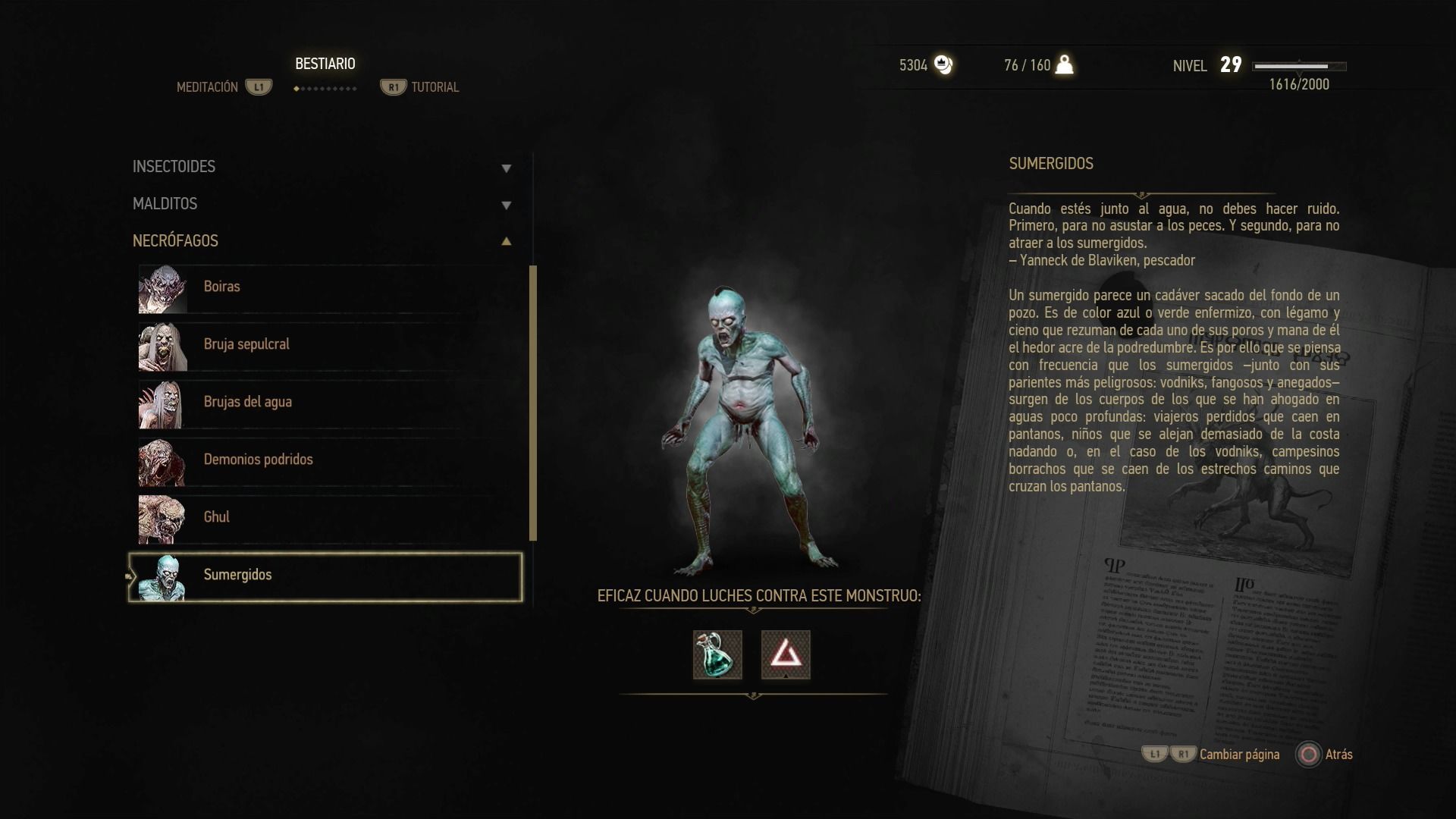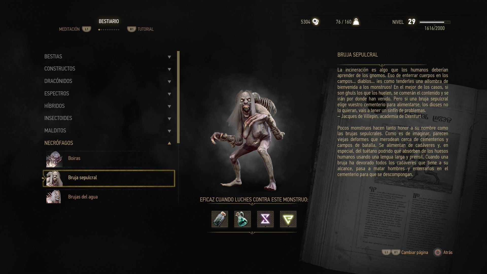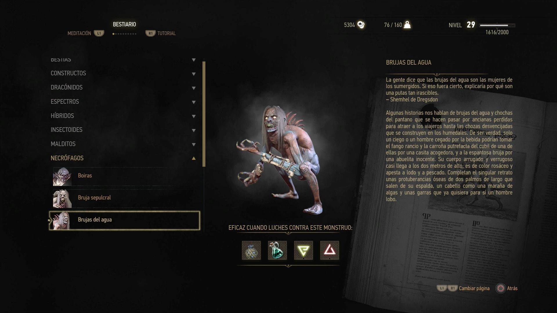 Puntos débiles: sangre negra, aceite para necrófagos, Yrden, Quen
