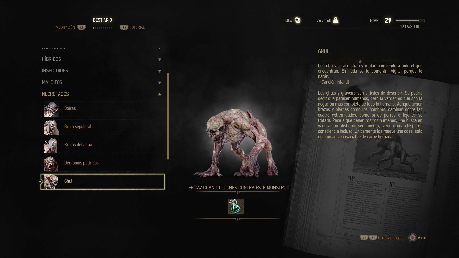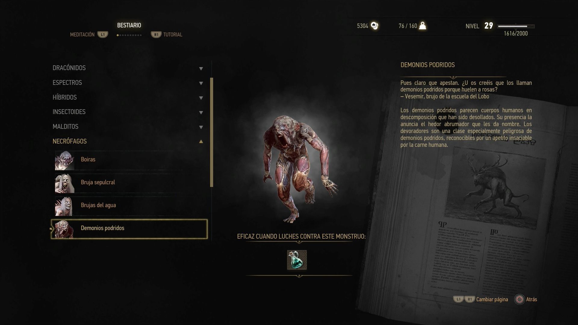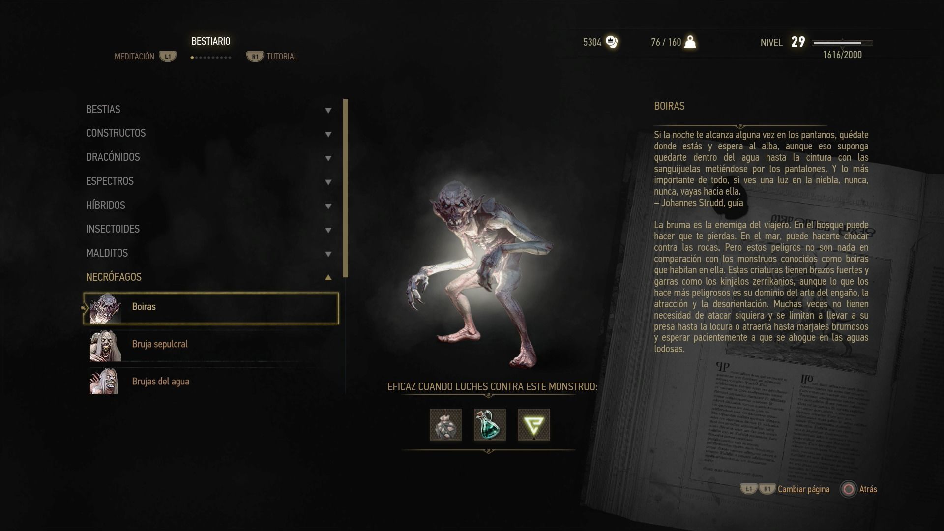 Puntos débiles: sangre negra, aceite para necrófagos, Yrden, Quen