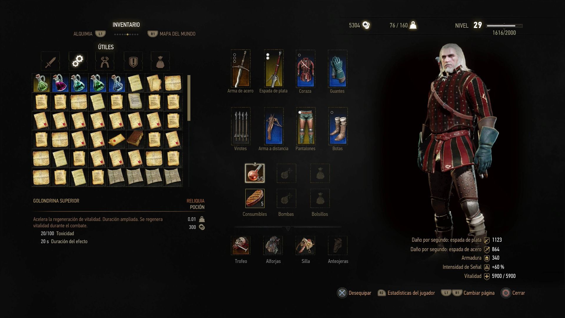 - Golondrina: te ofrece regeneración de vitalidad constante y elevada, más que cualquier otro objeto consumible. Si recibes un golpe los efectos de la poción se detienen durante dos segundos, algo que no sucede con la fórmula superior.