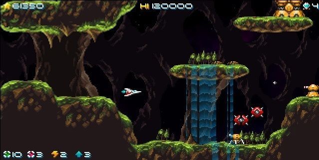 Pero una vez nos ponemos en faena vemos que sí, que homenajea a Gradius, pero también a casi toda saga relevante de los juegos de matamarcianos con desplazamiento horizontal, y como tal tiene momentos de R-Type, de Darius, de Thunderforce y de otros clásicos, a los que se permite el lujo de encima crear escenarios como The Path of Scylla, una fase rodeados de agua donde tenemos que sacar lo mejor de nosotros mismos para no perecer de muchas maneras distintas.