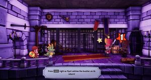 Al subir de nivel puedes reforzar HP, MP (“Mocha Points”) o puntos de abalorios, y equipar trinkets/insignias que otorgan habilidades pasivas o nuevos movimientos, permitiéndote definir builds más ofensivas, defensivas o centradas en efectos de estado. El mundo mezcla entornos 3D con elementos 2D “de papel” y está lleno de puzles ambientales, rutas ocultas y objetos escondidos detrás de decorados, animando a revisar cada rincón de los escenarios para encontrar curas, mejoras y secretos opcionales.