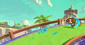 Una de las innovaciones más notables de esta entrega es el acelerón giratorio, un nuevo movimiento que permite ganar velocidad y encontrar atajos, similar al impulso cargado de la saga Sonic. Este movimiento puede ser estratégico para reducir tiempos y superar desafíos más rápidamente. Además, podemos girar la cámara para tener una mejor vista del entorno, lo que es especialmente útil en mapas más complejos. El juego ofrece más de 300 objetos desbloqueables para personalizar a los personajes, incluyendo ropa, accesorios y bolas simias.