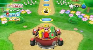 En Mario Party 9, los jugadores recorren diversos tableros temáticos en un vehículo compartido, una novedad en la serie. A diferencia de los juegos anteriores, donde cada jugador se movía de forma independiente, en Mario Party 9 todos los jugadores avanzan juntos, y el control del vehículo pasa de un jugador a otro en cada turno. Esto añade una dimensión estratégica al juego, ya que la posición en el vehículo puede afectar el acceso a minijuegos y recompensas.