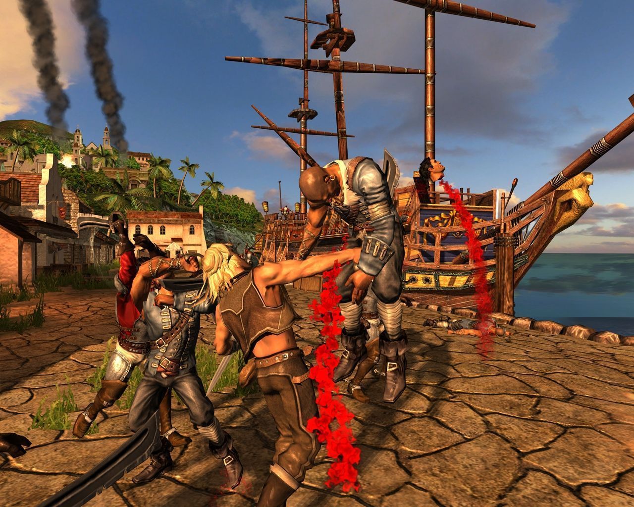 En año después, en 2004, 1C Company (que serviría de editora) anunció el juego en el E3, con la promesa de un juego donde extensas e impredecibles batallas navales y un realista sistema de combate con espadas serían la clave de este título. En esta versión se ponía también especial énfasis en la recreación de los barcos, que contaban con un elaborado sistema de destrucción, tal y como podéis ver bajo estas líneas.