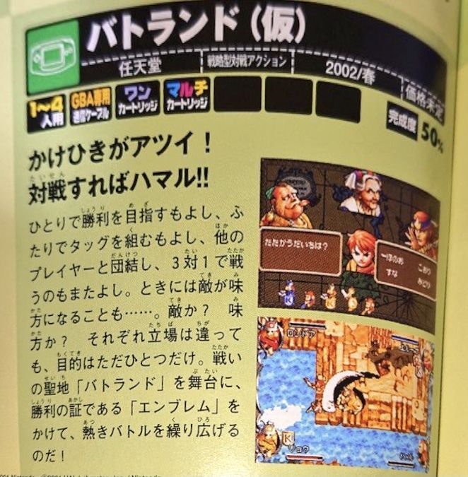 Battland estaba al 50% de su desarrollo cuando se anunció –al igual que Luna Blaze, en la Spaceworld celebrada a finales de agosto de 2001–, y también estaba previsto para primavera de 2002. Parece improbable que se llegase a terminar, a diferencia del otro título que hemos cubierto hoy, pero sin duda había avanzado bastante. Por desgracia, al igual que Luna Blaze, se canceló sin dejar rastro.