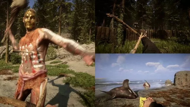 - Recoge salmón fresco directamente de los arroyos en primavera y verano. Recoge y almacena carne para los fríos meses de invierno. No estás solo en esta isla, así que cuando llegue el invierno y los alimentos y recursos escaseen, no serás el único que busque comida.