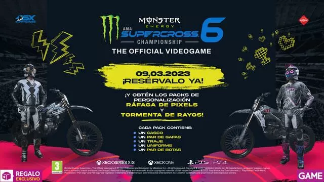 ¡Así que ya lo sabes! No te quedes sin tu DLC exclusivo GAME con contenido extra para Monster Energy Supercross - The Official Videogame 6 y resérvalo ya, ¡a la venta el próximo 9 de marzo!