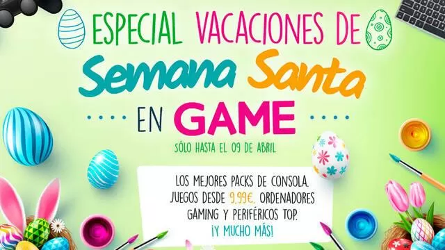 Ahora que está a punto de llegar la Semana Santa, en GAME han querido celebrarla de la mejor manera posible para los gamers: con descuentos especiales en packs de consolas, videojuegos, ordenadores, accesorios, telefonía y merchandising... ¡entre otras muchas cosas! Estas ofertas del Especial Vacaciones de Semana Santa de GAME ya han dado comienzo tanto en tiendas físicas como en GAME.es, y estarán disponibles hasta el 9 de abril o fin de existencias.