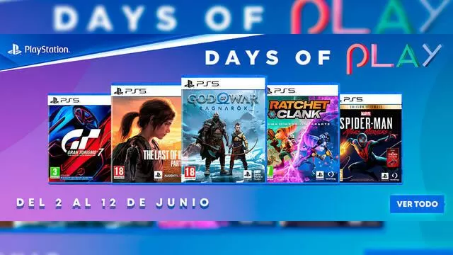 ¡Vuelven los Days of Play a GAME! Aprovecha estos increíbles chollazos en juegos de PS5, PS4 y periféricos PlayStation y date un capricho para estas vacaciones. Podrás encontrar juegazos a precio especial como God of War: Ragnarök, Horizon: Forbidden West, Marvel’s Spider-Man: Miles Morales… ¡y muchos más! Solo hasta el 12/06/2023 o fin de existencias en tiendas GAME y página web.