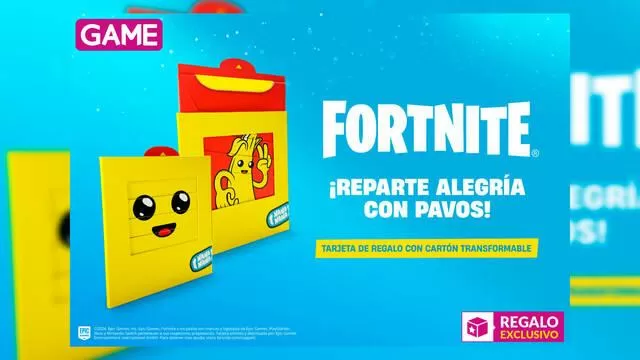 Y, por eso, en GAME quieren que estas Navidades te lleves un regalazo de este juego al comprar tu saldo de PAVOS, ¡así que muy atento! Y es que, solo al comprar tu saldo de PAVOS en tiendas GAME, vas a poder llevarte una espectacular TARJETA FÍSICA TRANSFORMABLE exclusiva de PEELY, uno de los personajes más queridos del juego, ¡no te la puedes perder! Es ideal para regalar el saldo de PAVOS a tus personas favoritas esta Navidad, ¡o hacerte un buen autorregalo! Esta tarjeta exclusiva de Fortnite solo estará disponible con el saldo de 2.800 PAVOS.