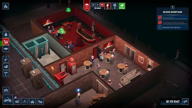 A medida que el negocio crece, los jugadores pueden expandirse a través de diferentes distritos de Crimson City, que ofrecen nuevos desafíos y permiten conocer a enigmáticos vampiros ancianos, que influirán en su trayectoria. La gestión del personal es fundamental; se pueden contratar subordinados vampíricos, asignarles tareas específicas y establecer prioridades para optimizar las operaciones del bar. El juego ofrece la opción de microgestionar o automatizar procesos, permitiendo al jugador elegir su estilo de administración.