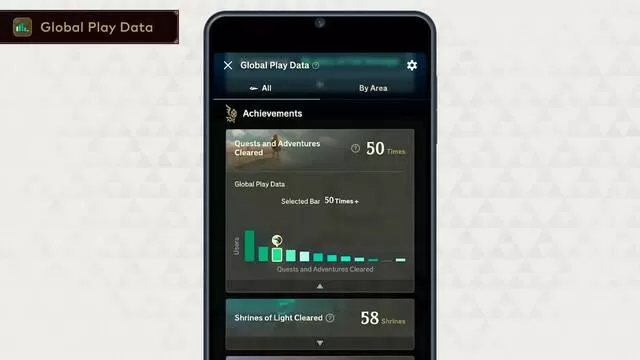 En cuanto a los logros, son algo parecido, ya que registran cosas como el número de misiones que hemos completado o los santuarios que hemos superado con éxito, aunque esto se nos muestra con una especie de ranking global en el que nos enseñan en qué rango o posición estamos respecto al resto de jugadores.