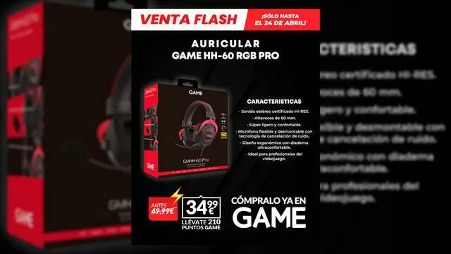 Consigue ya tus auriculares GAME HH-60 RGB por 34,99€, ¡sólo hasta el 24 de abril o fin de existencias!