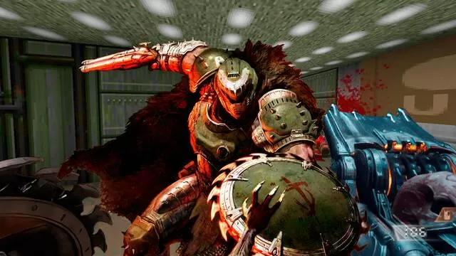"En este caso a pesar de que se vuelve a los orígenes manteniendo los pies en el suelo también tenemos el sierra-escudo, que es el ejemplo más claro, un arma esencial para resistir los combates contra el mayor número de enemigos que hemos visto jamás en pantalla en un Doom, ofreciéndonos combates desafiantes, muy divertidos y que nos harán tener que tomar todo tipo de decisiones casi al milisegundo si queremos salir con vida del entuerto".