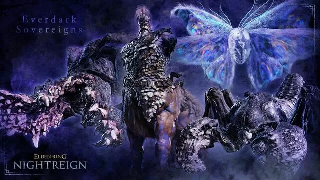 The Everdark Sovereigns Gaping Jaw, Sentient Pest & Darkdrift Knight Nightlords will come back in pairs over the next three weeks in #ELDENRING #NIGHTREIGN.